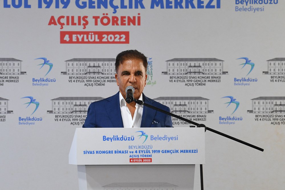 Açılış töreninde yaptığı konuşmada, Sivas Kongresi’nin önemine dikkat çeken Beylikdüzü Belediye Başkanı Mehmet Murat Çalık “103 yıl önce bugün toplanan Sivas Kongresi’nde manda ve himaye reddedilerek vatanın bölünmez bütünlüğü kabul edildi. Sivas Kongresi, Mustafa Kemal Atatürk önderliğinde milletimizin bağımsızlık yolunda verdiği Milli Mücadele’nin fitilinin ateşlendiği gündür. Sivas Kongresi, millet egemenliğine dayanan yeni bir devletin doğuşunun müjdecisidir. Sivas Kongresi, Milli Mücadele’nin önemli aktörlerinden olan kadınların örgütlenmesine de ön ayak olmuştur. Böyle özel bir günde ilçemize, Beylikdüzü Sivas Kongre Binası ve 4 Eylül 1919 Gençlik Merkezi’ni kazandırmaktan dolayı çok mutluyuz. Sivas Kongresi’nin yapıldığı binanın replikasını büyük bir titizlikle inşa ettiğimiz bu yapı, Milli Mücadele ruhunu başta çocuklar ve gençler olmak üzere tüm komşularımıza yaşatacaktır. İçerisinde; Sivas Kongresi Salonu, sergi salonları, eğitim sınıfları, kütüphane, etüt merkezi, robotik kodlama atölyesi, kadın el sanatları atölyesi bulunan merkezimiz Cumhuriyetimizin yeni nesillerine hizmet edecek. Bu merkezin ilçemize kazandırılmasında bizlerle iş birliği yapan Beylikdüzü Sivaslılar Sosyal Yardımlaşma ve Kültür Derneği ile merkezimizin inşasını üstlenen Demir Grup Yönetim Kurulu Başkanı Hamit Demir’e teşekkür ediyorum” şeklinde konuştu.