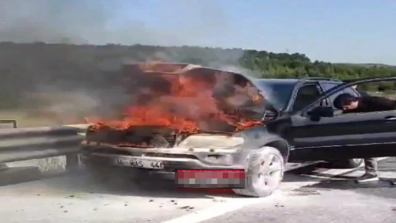 Sabah saatlerinde Kuzey Marmara Otoyolu'nda meydana gelen olayda bir cip alev aldı. Alevlerin kısa sürede büyümesiyle hurdaya dönen cipten, araç sahiplerinin eşya almaya çalıştığı görüldü.
