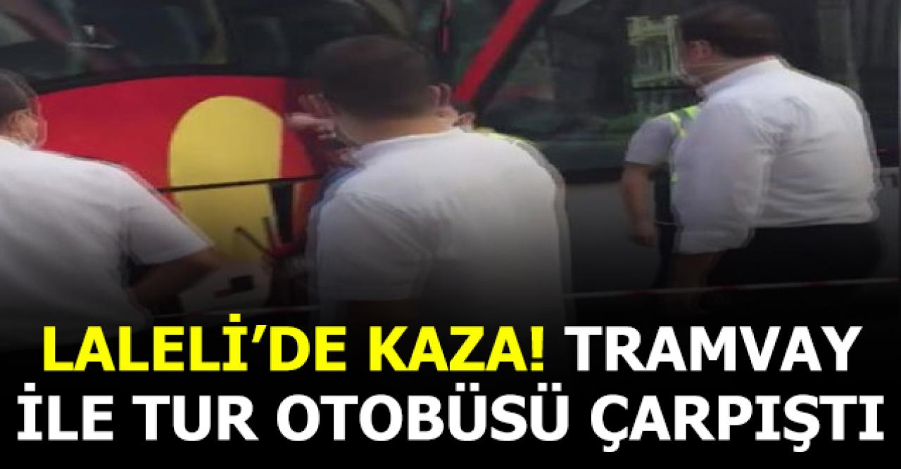 Laleli'de tramvay ile tur otobüsü çarpıştı. Kaza nedeniyle tramvay seferleri yapılamıyor. İş yerlerine gitmek için yola çıkanlar inerek tramvay yolunda yürüdü.