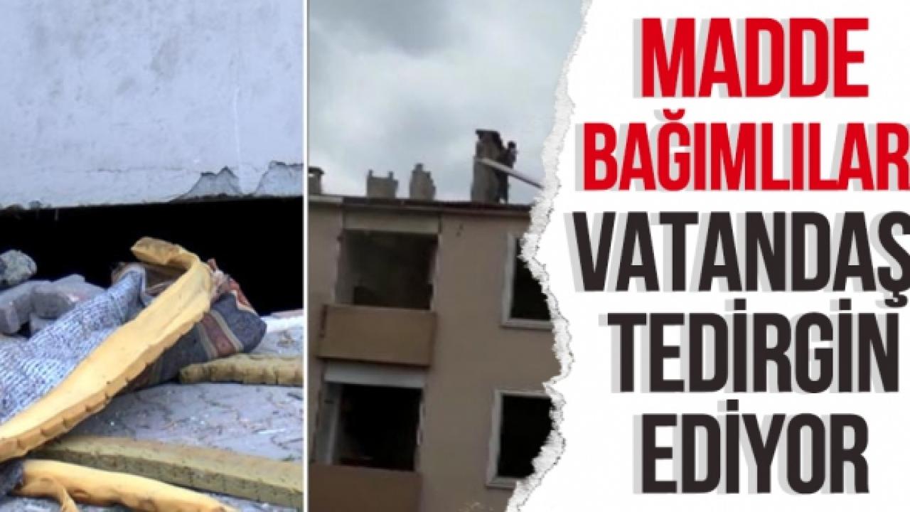 Esenyurt'ta bulunan bir metruk binayı uyuşturucu kullananlar meskeni tuttu. Zaman zaman içeride madde bağımlılarını gördüklerini söyleyen vatandaşlar ise durumdan tedirgin. 30 senedir aynı mahallede oturduğunu söyleyen Ali Akdemir, "Uyuşturucu kullananlar, tiner kullanan çocuklar gelip burada yuvalanıyorlar. Ondan sonra mahalleden geçen kadınlar, kızlar, çocuklar rahatsız oluyorlar. Tedirgin oluyorlar. Bu bina yıkılacak ama yıkılana kadar uyuşturucu, hap kullanan buralarda kümelenecekler" dedi.