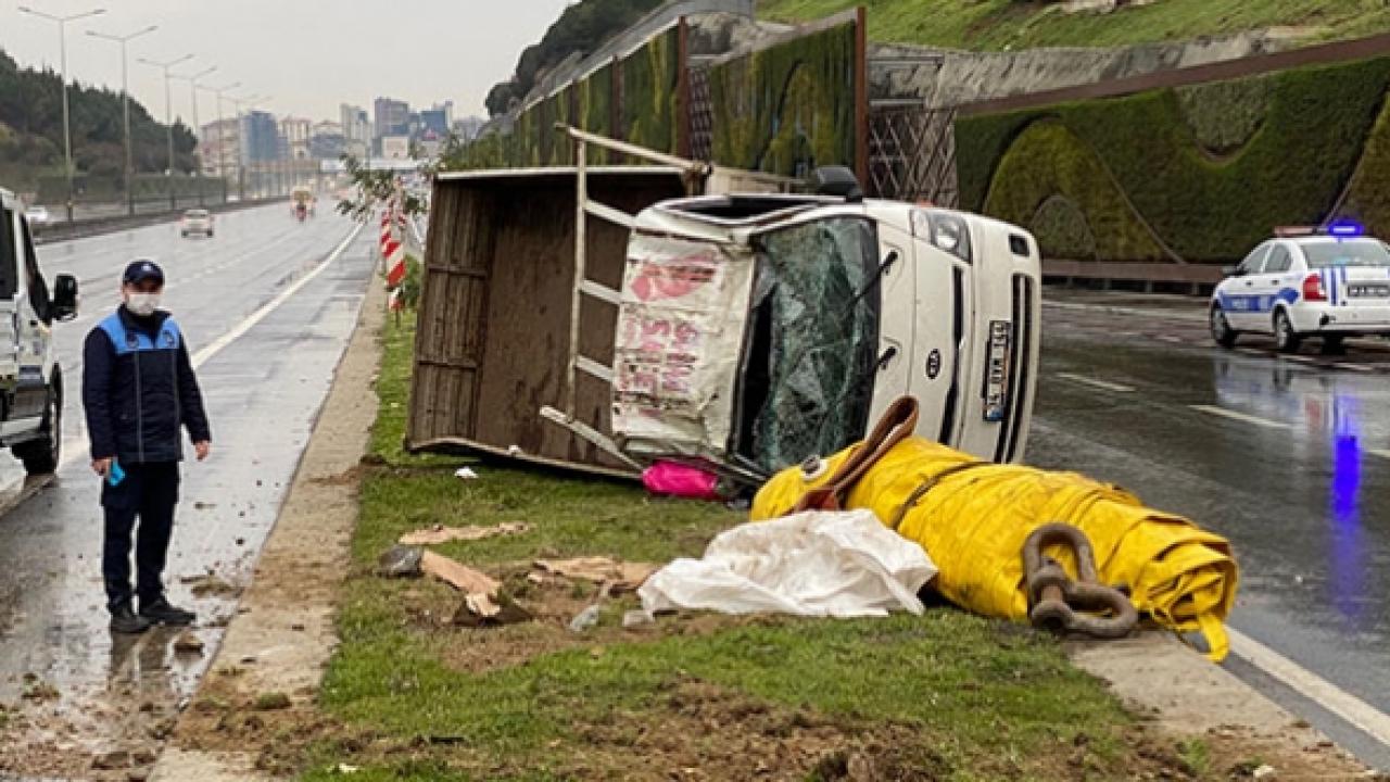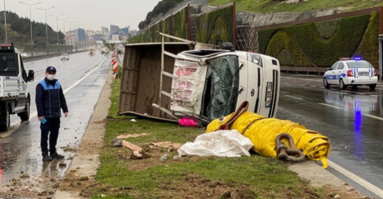 Kaza saat 08.00 sıralarında Maltepe D-100 Karayolu Kadıköy istikametinde meydana geldi. Mehmet Ali Yılmaz yönetimindeki 34 BVM 144 plakalı inşaat firmasına ait kamyonet, yağış nedeniyle kayganlaşan yolda kontrolden çıkarak orta refüje devrildi. İhbar üzerine olay yerine itfaiye, sağlık ve polis ekipleri sevk edildi. Kısa sürede olay yerine gelen itfaiye ekipleri araçta sıkışan 2 kişiyi çıkarttı. Sürücü Yılmaz ve arkadaşı ambulanslarla hastaneye kaldırılarak tedavi altına alınırken, kamyonet çekici yardımıyla kaldırıldı. DHA