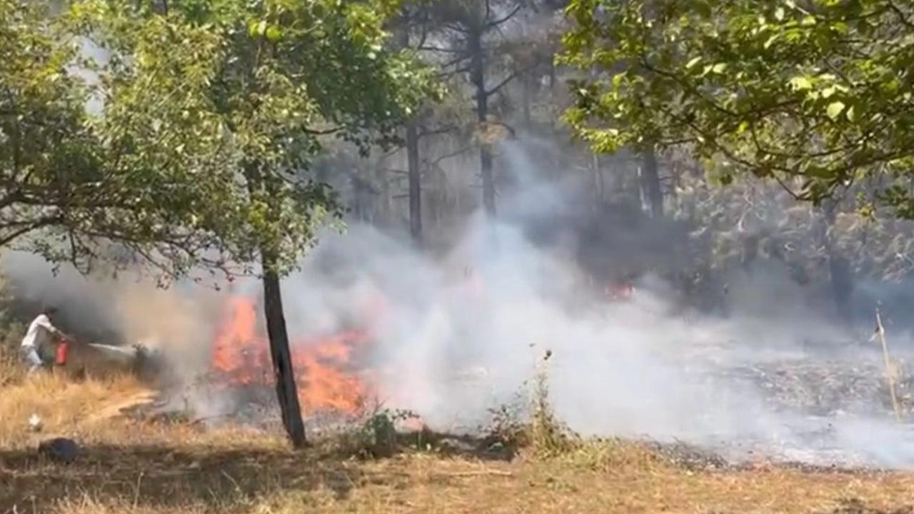 Kısa sürede büyüyen yangın havadan ve karadan yapılan müdahale sonrasında söndürülürken meydana gelen yangın vatandaşların cep telefonu kamerasına yansıdı