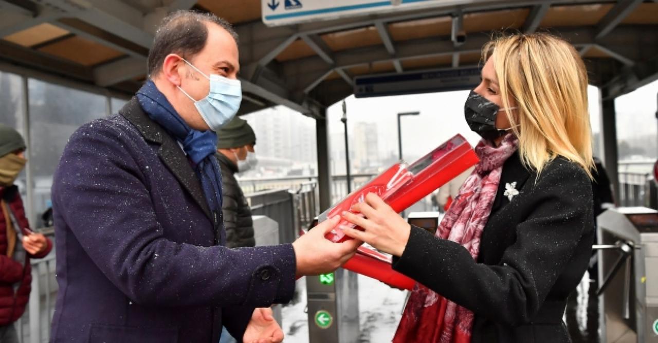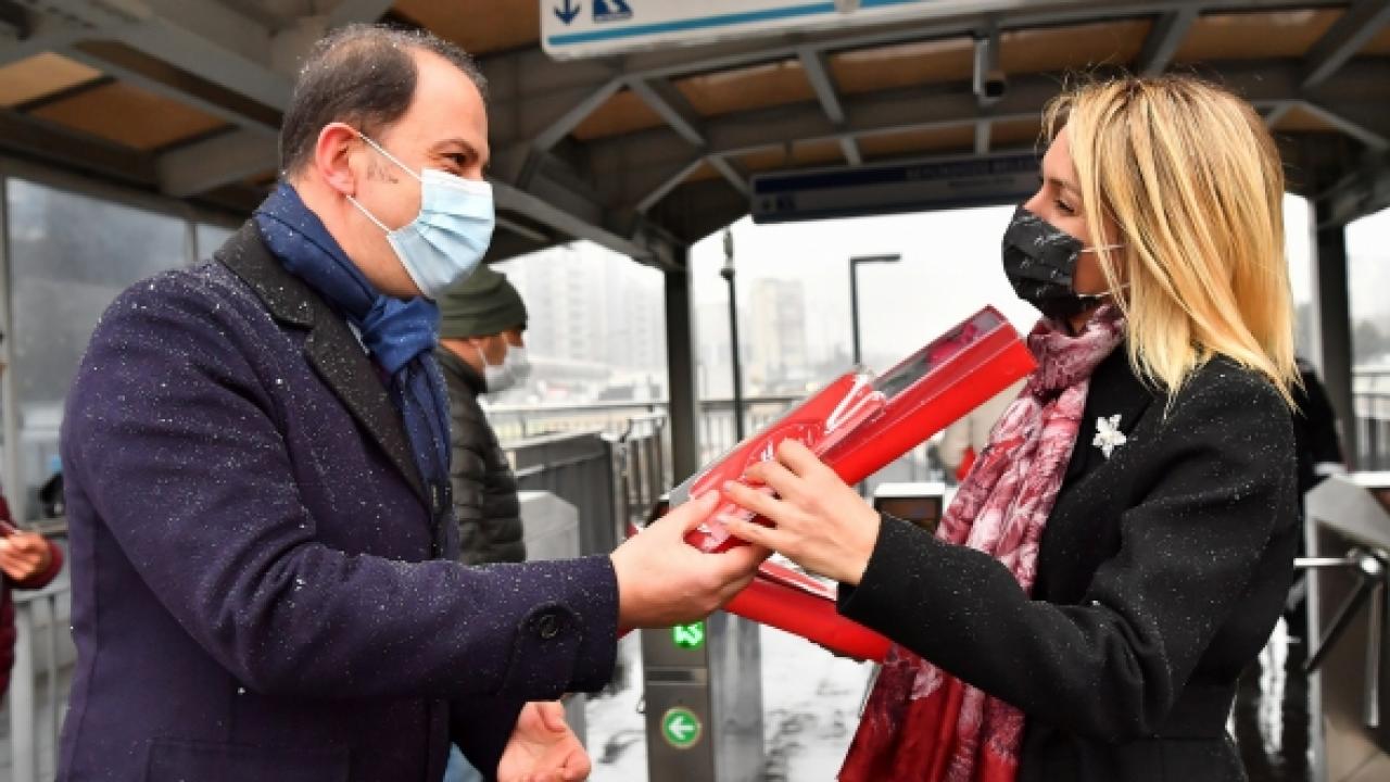 14 Şubat Sevgililer Günü’nün hafta sonuna denk gelmesi ve sokağa çıkma kısıtlamaları nedeniyle, Beylikdüzü Belediye Başkanı Mehmet Murat Çalık, eşi Zehra Çalık ve Beylikdüzü Belediyesi 1.Başkanvekili Serdal Mumcu Beylikdüzü Metrobüs Meydanı’nda vatandaşlara aşkın ve sevginin sembolü olan kırmızı güller ve kırmızı maske hediye etti. Başkan Çalık, sabahın ilk saatlerinde iş yerlerine gitmek üzere yola çıkan Beylikdüzülü vatandaşlara sürpriz yaparak Sevgililer Günü’nü kutladı. Sevgililer Günü’ne özel verdiği mesajda herkesin ortak dilinin daima sevgi olması gerektiği temennisinde bulunan Başkan Çalık, “Kentimizde sevgiyi yaşattıkça, aşamayacağımız hiçbir sorun olmadığına inanıyor, 14 Şubat Sevgililer Gününüzü kutluyorum.” dedi. Kar yağışının da etkili olduğu meydanda vatandaşlar kendilerine yapılan sürprizden dolayı duydukları memnuniyeti dile getirerek Başkan Çalık ve eşi Zehra Çalık’a teşekkür etti.