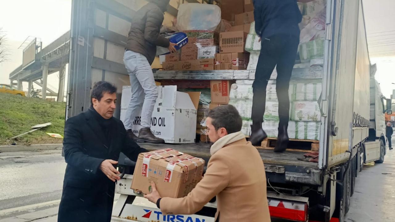 Mert Holding Yönetim Kurulu Başkanı Halis Kahriman, afet bölgesine yardım tırı gönderdi.