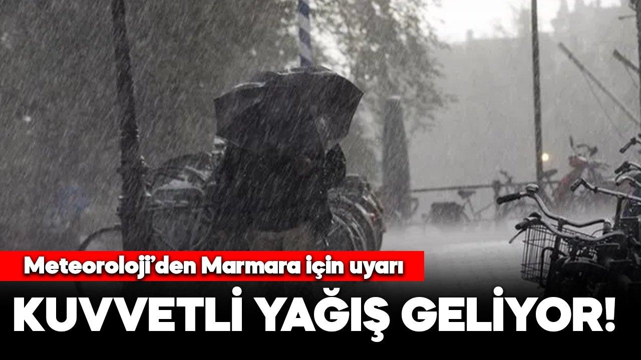 Meteoroloji Genel Müdürlüğü (MGM) tarafından bugün için yapılan uyarılara göre; Marmara Bölgesi'ndeki pek çok il için kuvvetli sağanak ve gök gürültülü sağanak yağış uyarısı yapıldı. Verilen uyarıya göre; Trakya kesimi ve İstanbul'un kuzeyindeki ilçelerde yerel olarak sağanak yağış etkili olacak.