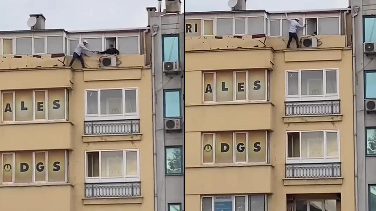 Olay Söğütlüçeşme Caddesi'ndeki 6 katlı bir binada yaşandı. Bir işçi binanın en üst katındaki dairenin dış cephesine hiçbir güvenlik önlemi almadan çıktı. Metrelerce yükseklikte tehlikeye aldırış etmeyen işçi klima tamiri yaptı. Dairenin içindeki arkadaşından zaman zaman malzeme alan işçinin tehlikeli anları cep telefonu kamerasıyla kaydedildi.