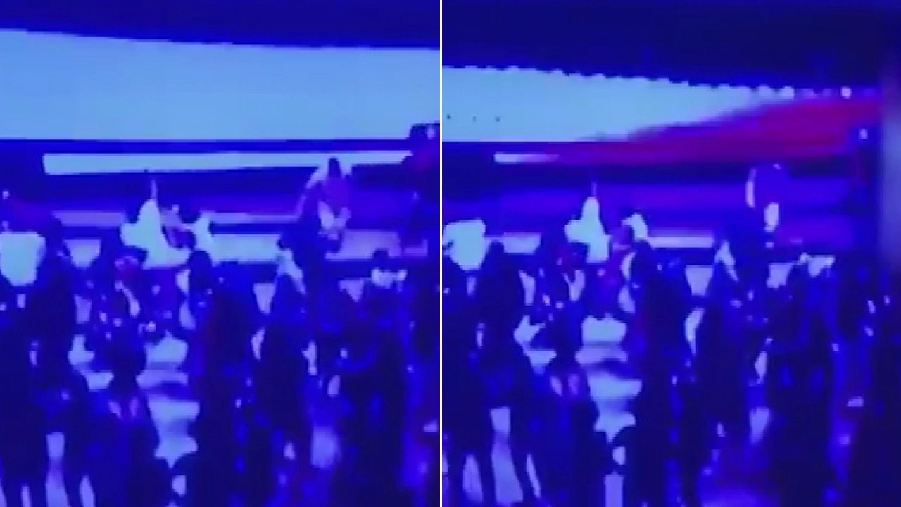 Son olarak dev LED ekranın sahnedekilerin üzerine düşme anına ait görüntüler ortaya çıktı.