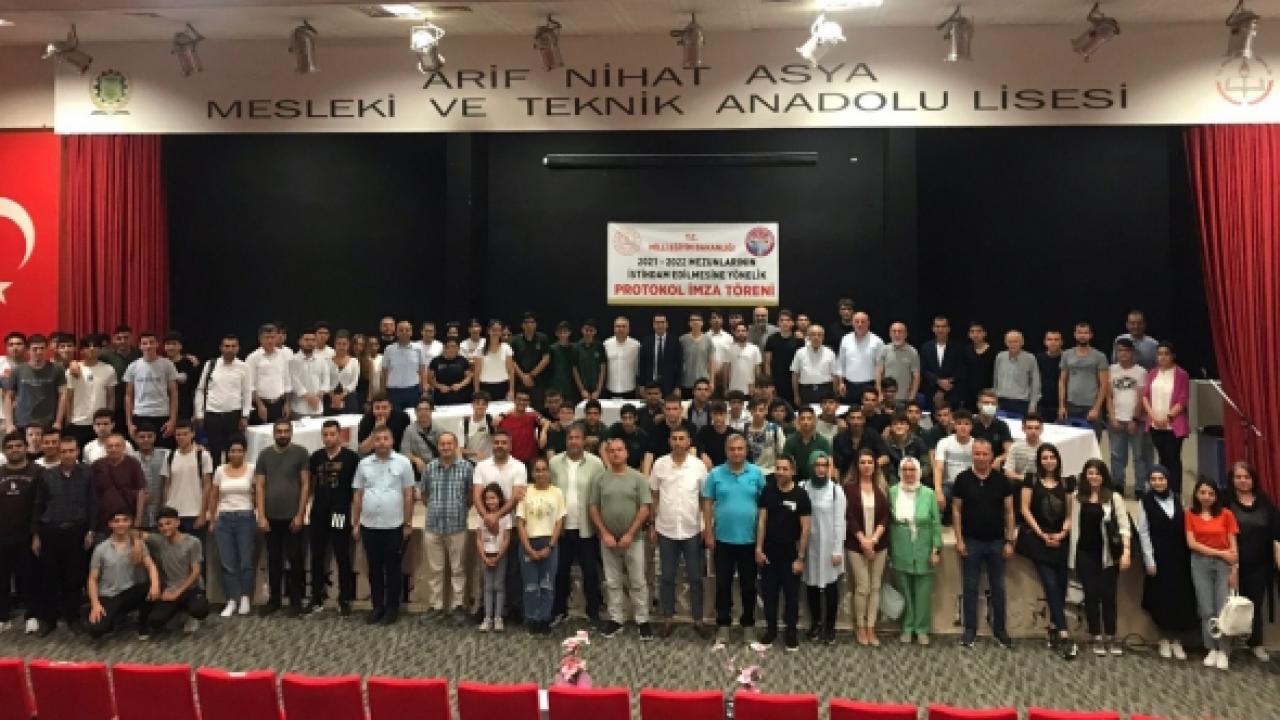 Çatalca Arif Nihat Asya Mesleki ve Teknik Anadolu Lisesi, mezunlarının iş bulabilmesi adına önemli bir protokola imza attı. İstanbul'daki mezunlarının en az yüzde otuzunun iş bulabilmesi adına işverenlerle protokol imzalayan okul, öğrencilerinin geleceği için de umut oldu. Konuya ilişkin Damga'ya konuşan Çatalca Arif Nihat Asya Mesleki ve Teknik Anadolu Lisesi Müdürü Veli Kozak, “Öğrencilerimize mezun olduktan sonra da katkı sunabilmek adına böyle bir protokol imzaladık. Yaklaşık 20 tane işverenimizi okula davet ettik. Onlar da sağ olsunlar bizlere 18 yaşının üzerinde, çalışmaktan isteyen tüm mezunlarımıza iş sözü verdiler. Arif Nihat Asya Mesleki ve Teknik Anadolu Lisesi olarak böyle bir protokola ev sahipliği yapmaktan ve ev sahipliği yapmaktan onur duyduk. Çocuklarımız için çalışmaya ve örnek işler yapmaya, eğitimciler olarak devam edeceğiz” ifadelerini kullandı.