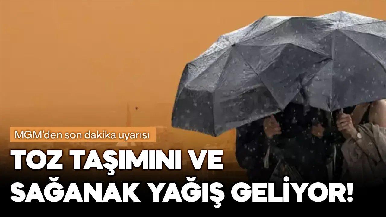 Meteoroloji Genel Müdürlüğü (MGM) tarafından bugün açıklanan verilere göre bugünden itibaren Marmara bölgesi dahil pek çok kentte toz taşınımı ve sağanak yağış etkisini gösterecek.