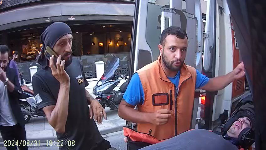 Avcıar'da, otomobilin çarpması sonucu yere düşerek yaralanan motokuryenin durumunu öğrenen arkadaşları, yardıma koştu. Polis ve sağlık ekibinden önce gelen motokuryeler, yaralı meslektaşlarını hastaneye sevk edilinceye kadar yalnız bırakmadı.