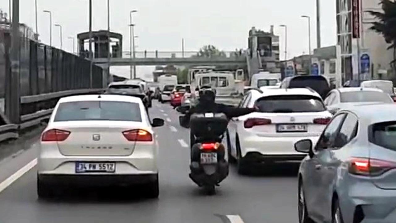 Durumu fark eden bir motosikletli kurye devreye girerek, arasına girdiği araçların sürücülerini tek tek uyararak ambulansa yol vermelerini istedi.