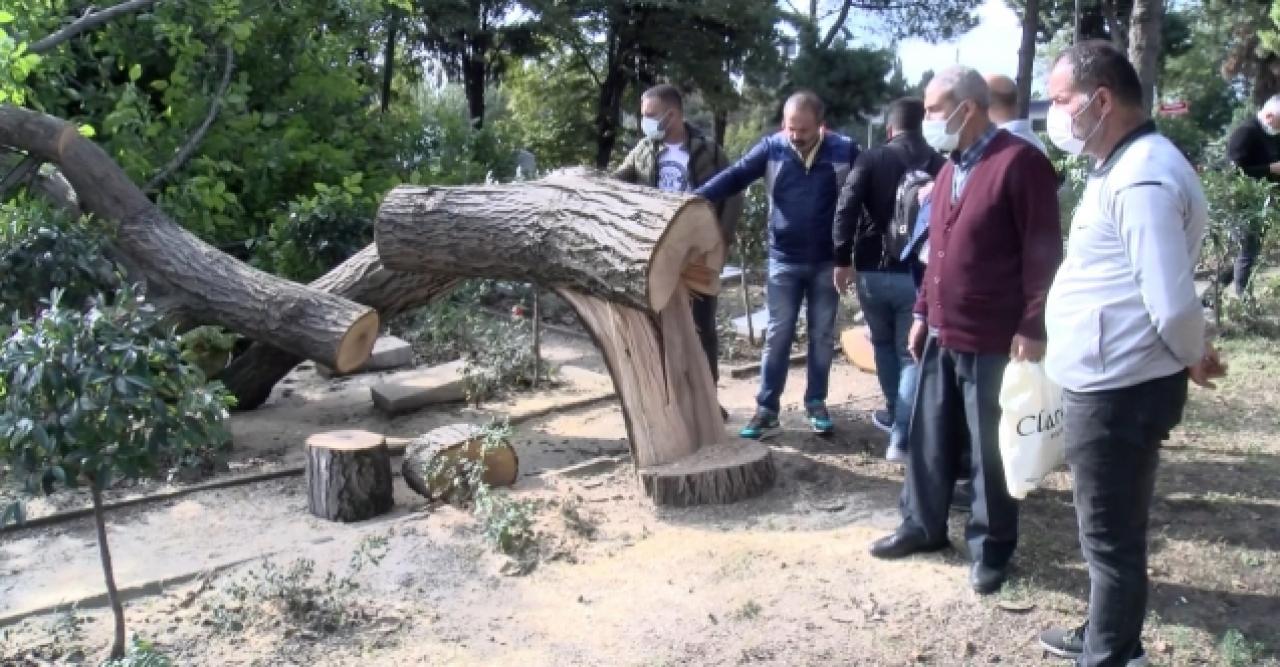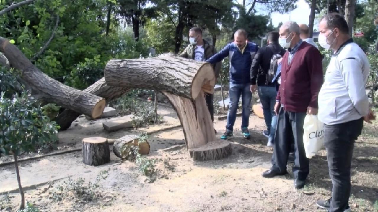 Olayı gören Mehmet Ayaz ise "Sabah buradaydım. Bir ses geldi. Dönüp baktığımda, 80 yıllık yemyeşil ağacı kesmişler. Çürümüş ya da kurumuş hiçbir yeri yok. Bu ağacın ne zararı olabilir? Motorlu testereyi bırakıp kaçtılar. Valiliğin emri olduğunu söylediler. Diyelim Valilik emri var; ağaç böyle mi kesilir? Şehit mezarlarının üzerine gelmeden dalları kesilebilir. Belediye evinizin bahçesindeki ağacı kesmenize izin vermiyor. Bu ağacı nasıl kesersiniz" diye konuştu. İBB yetkilileri ise, valiliğin talebi doğrultusunda tehlike saçan ağacın kesiminin yapıldığını belirtti.