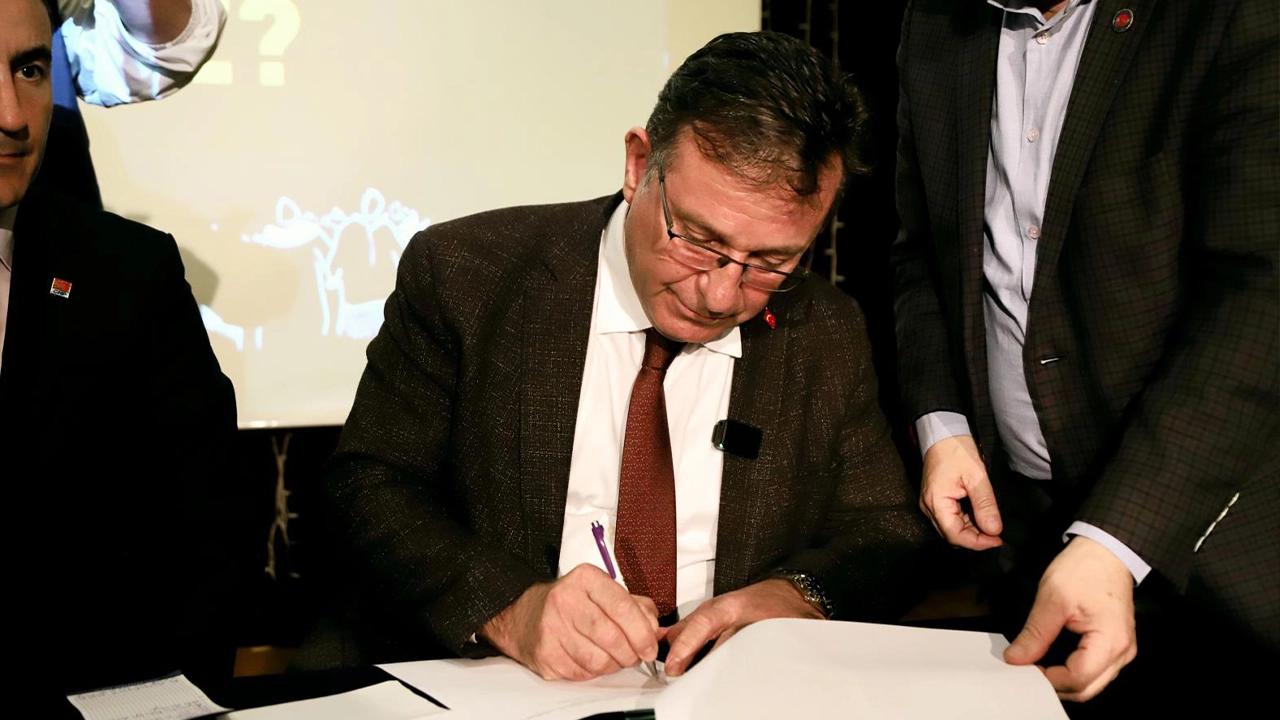 Sarıyer’de binlerce vatandaşı ilgilendiren tapu ve mülkiyet sorununun çözümü konusunda Mahalleler Birliği’nin Yaşar Kemal Kültür Merkezi’nde düzenlediği ve belediye başkan adaylarının imzalaması için hazırlanan ‘Taahhütname’ toplantısında Sarıyer’de belediye başkan adaylarının bazıları taahhütnamede yazılı olan maddelere bağlı kalacaklarına dair imza verdiler. CHP Sarıyer Belediye Başkan Adayı Mustafa Oktay Aksu, toplantıda yaptığı konuşmanın ardından taahhütnamede sıralanan maddelere, ‘Hangi kurum olursa olsun gerekirse sabahlara kadar kapılarda yatacak ve haklarınızla ilgili sizlerden daha çok mücadele edeceğim’ maddesini de ekleyerek imzaladı.