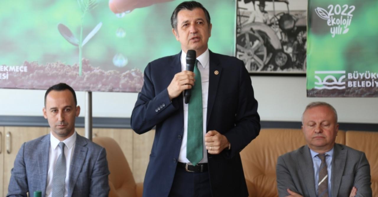 Belediye Meclis Üyesi Murat Erçağ şöyle konuştu: “Öncelikle 14 Mayıs Çiftçiler Günü’nüzü kutluyorum. Hepiniz hayırlı, bol ve bereketli olmasını diliyorum. Gerçekten çok zor koşullar altında üretim yapıyorsunuz. Bir traktörün iki çift lastiği için 20 bin TL ödendiğini duyuyoruz. Daha bunun ile ilgili bir sürü bir sürü sıkıntılı dönemden geçiyorsunuz. Gerçekten devrim yaratıyorsunuz. Zamanın koşullarına meydan okuyorsunuz. Hepinizin emeğine sağlık. Biz de Büyükçekmece Belediyesi ve BÜTKOOP Tarım Kooperatifi olarak daha önce sosyal medyada paylaştığımız toprak analizimiz ile alakalı bir bilgilendirme yapalım istedik. Burada duymamış olanlar var ise bu konu ile ilgilenenler var ise onlara yardımcı olmak istiyoruz. Toprak analiz cihazımız var. Dijital toprak analiz cihazımız. Tarlalarınızda alınan toprak numunelerini Bizim Tarım Müdürlüğüne ulaştırdığınızda biz bunları çok kısa bir süre içerisinde analizini sağlayıp hızlıca size WhatsApp ya da mail yoluyla ulaştırıyoruz. Bunun ile beraber dijital tarımda size faydalı olacağını düşündüğümüz yeni bir projemiz başlıyor. İnşallah yakın zamanda onu da sizlere duyuracağız.’’