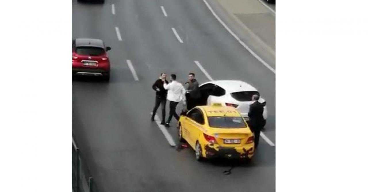 Dün, D-100 Karayolu Büyükçekmece istikametinde taksi ile otomobilin çarpışması sonucu kaza meydana geldi. Maddi hasarla atlatılan kazanın ardından sürücüler arasında tartışma çıktı. Taksi şoförü, direksiyon kabininde oturan otomobil sürücüsü ile tartışırken, otomobilin yolcu kabininden inen kişi tartışmaya girdi. Bu tartışma sırasında yolcu, taksi şoförüne kafa attı. Sürücü ve taksi şoförü arasında geçen arbede sonrası taraflar, araçlarına binerek olay yerinden ayrıldı. O anlar bir vatandaşın cep telefonu kamerası ile görüntülendi.