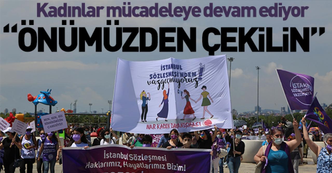 Kadın cinayetlerine son verilmesi talebinin öne çıktığı eylemde yapılan basın açıklamasında, "Biz kadınlar, kazanılmış haklarımızın gasp edilmesine izin vermeyeceğiz. Tek adam rejiminin 20 Mart 2021 tarihinde, gece yarısı açıkladığı İstanbul Sözleşmesi’nin fesih kararını tanımıyoruz, tanımayacağız.