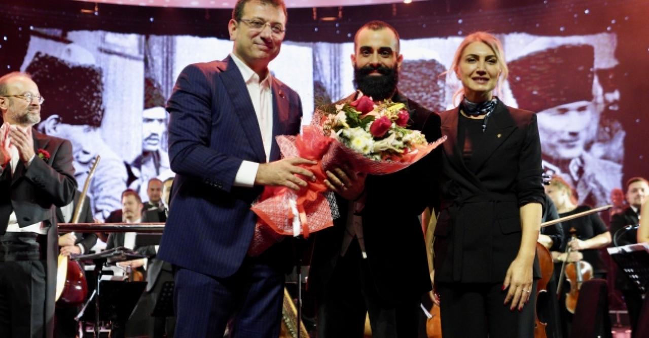 “Cumhuriyet’imizin ikinci yüzyılında, bir kez daha dünyaya güzelliklerle, iyiliklerle örnek olacağız” diyen İmamoğlu, konuşmasını, “Eşit ve özgür yurttaşların, vatandaşlarımızın, milletimizin emrinde, sadece onların mutluluğu için çalışan, demokratik ve çok güçlü bir devlet inşa edeceğiz. Kurumları ve kurallarıyla, bu coğrafyanın en özgür, en eşitlikçi ve en adil sistemini hep birlikte güçlendirip, yeniden inşa edeceğiz. Birbirine güvenen, saygı duyan, huzurlu ve mutlu bir toplum olacağız. Bize bu güveni, bu umudu ve cesareti veren onunla aynı topraklarda yaşamaktan, aynı ideallere ve aynı değerlere sahip olmaktan onur duyduğum büyük Atatürk’ü sizlerin, bu güzel Türkiye Cumhuriyeti'nin evlatlarının huzurunda sevgiyle, saygıyla, minnetle anıyorum. Ata’m, ruhun şad olsun” sözleriyle tamamladı. İmamoğlu’nun konuşmasının ardından katılımcılar, Mert Fırat Atatürk’ün hayatından bazı kesitleri izleyenlere anlattı. Gökhan Türkmen ve Melek Mosso, Atatürk’ün bazen neşelendiği bazen hüzünlendiği sevdiği şarkıları seslendirdi. Ekrem İmamoğlu’nun, Gökhan Türkmen’in ‘Fikrimin İnce Gülü’ adlı eseri seslendirirken eşi Dr. Dilek İmamoğlu’nu dansa kaldırmasına salon alkışlarla eşlik etti.