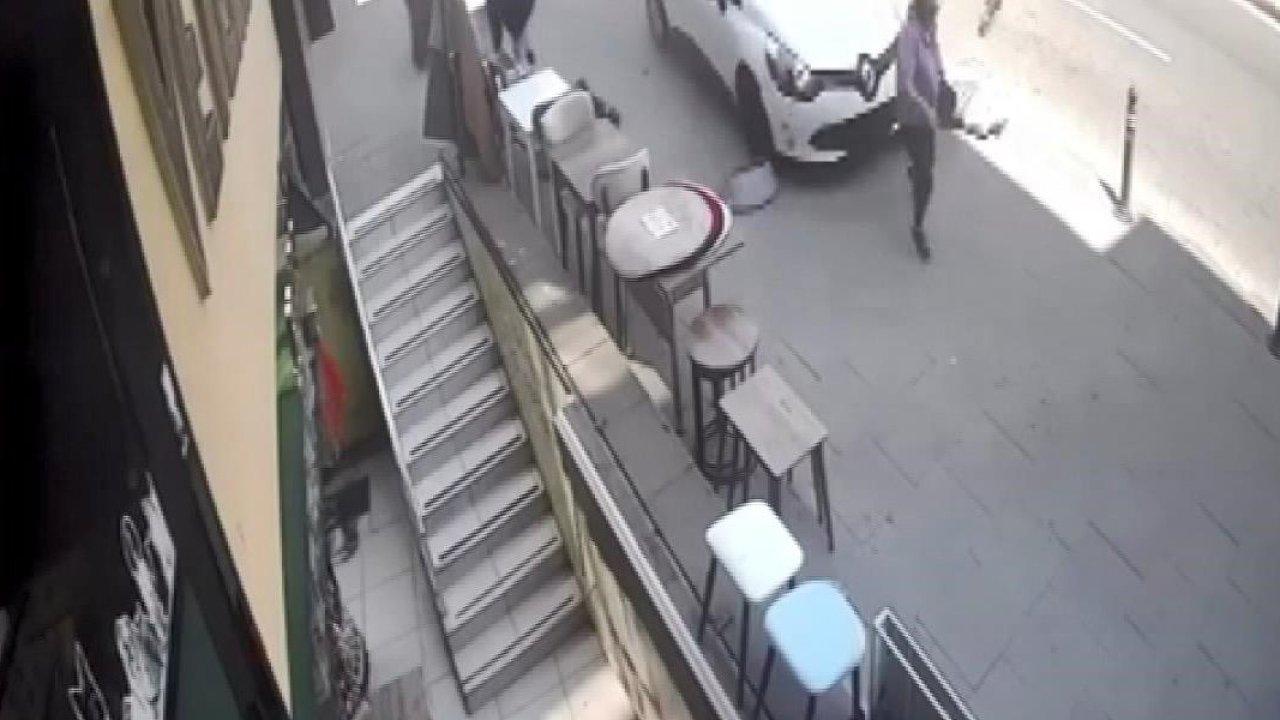 Kaza anı cevredeki bir iş yerinin güvenlik kamerası tarafından saniye saniye görüntülendi. Görüntülerde direksiyon hakimiyetini kaybeden sürücünün kaldırıma çıktığı anlar görülüyor. Otomobili fark eden bir kişinin son anda kurtulduğu, kaldırım kenarında oturan esnafın ise kendini korumak için kaçtığı anlar görüntülerde yer alıyor.