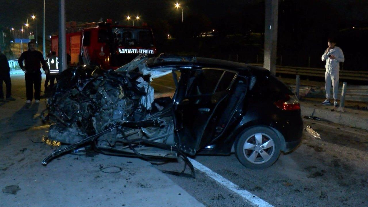 Sancaktepe'de sürücüsünün direksiyon hakimiyetini kaybettiği otomobil, refüjdeki aydınlatma direği ve bariyerlere çarparak durabildi. Kazada ayağı kopan sürücü Mikail C. ağır yaralandı.