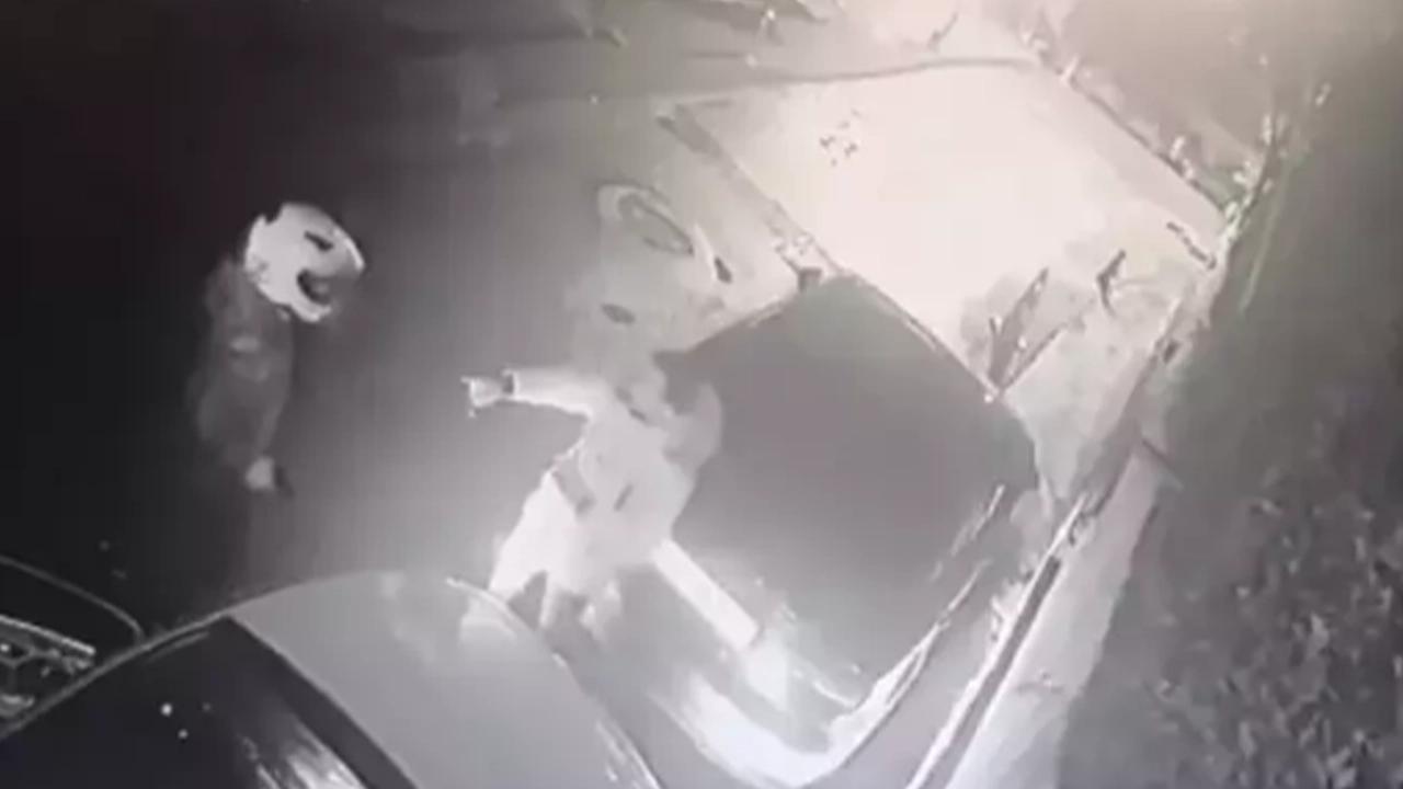 Otomobili çalmaya gelen kasklı şüphelinin kendisini uyaran valeye silah çektiği anlar, iş yerinin güvenlik kamerasına yansıdı. Görüntülerde şüpheli otomobilin kapısını açtığı sırada vale, şüpheliyi fark edip koşarak uyarmaya geliyor. Şüpheli, valeye silah doğrultuyor. Diğer çalışanlar da şüpheliye doğru koşmaya başlayınca kasklı ve silahlı kişinin olay yerinden kaçtığı görülüyor.