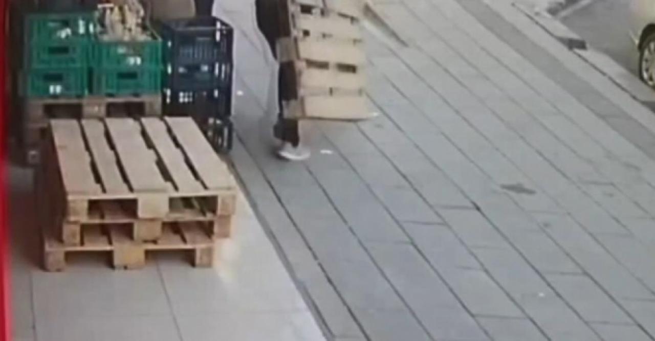 Olay, geçen salı saat 15.00 sıralarında Kocatepe Mahallesi'nde gerçekleşti. Cadde üzerindeki marketin önüne gelen şüpheli R.K., dışarıda bulunan tahta paletlerden birini alarak hızla uzaklaştı. Durumu fark eden market çalışanı da şüpheliyi yakalamak için peşinden koştu. Paleti aracına yükleyen şüpheli, bu sırada kendisine doğru koşan market çalışanına aracıyla çarparak kaçtı. Durumun bildirilmesi üzerine harekete geçen polis ekipleri, aracın plakasından şüphelinin kimlik bilgilerini tespit etti. Şüpheli R.K., polis ekiplerince yakalanarak gözaltına alındı. İşlemleri tamamlanan R.K., "Açıktan Hırsızlık" ve "Kasten Yaralama" suçundan adliyeye sevk edildi. Şüphelinin tahta paleti çaldığı ve peşinden koşan market çalışanına aracıyla çarptığı anlar, güvenlik kamerasına yansıdı.