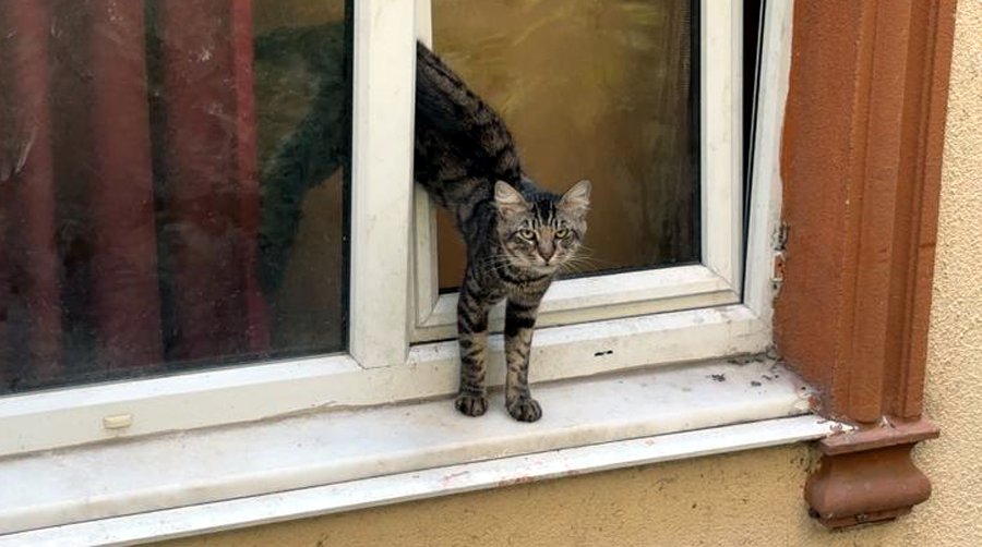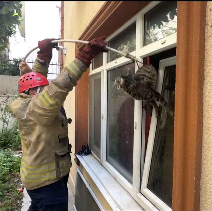 Denizköşkler Mahallesi Çukur Sokak'taki bir binanın bahçe katında oturan aile, kapıyı kilitleyerek evden çıktı. Evdeki kedi, havalandırmak için açık bırakılan pencereden çıkmaya çalışırken sıkıştı. Pencerede sıkışan kedi, çevredekilerin çabalarına rağmen kurtarılamadı. Bunun üzerine itfaiyeden yardım istendi.