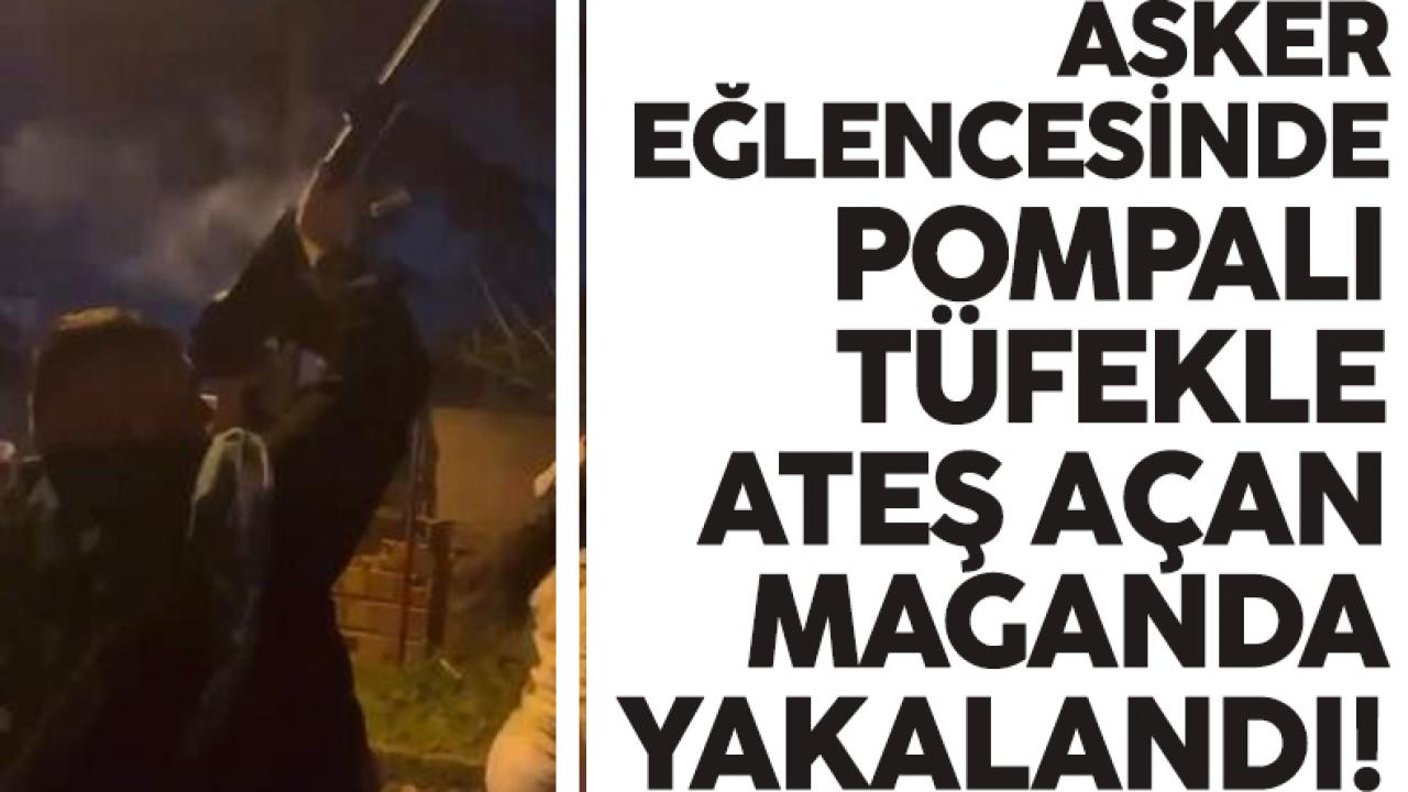 PENDİK'te asker eğlencesi yapan grup, bir yandan dans ederek eğlendi, bir yandan ise ellerindeki pompalı tüfekle havaya ateş etti. Pompalı tüfekle havaya ateş eden A.Ü. gözaltına alındı.
