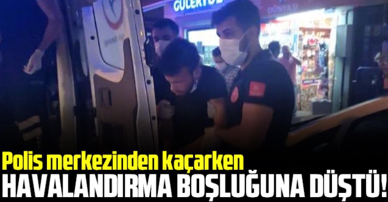 Olay, İsmet İnönü Caddesi üzerinde bulunan Çeliktepe Şehit Bestami Şeker Polis Merkezi'nde saat 22.30 sıralarında meydana geldi. Edinilen bilgiye göre, polis merkezindeki yabancı uyruklu şüpheli tuvalete götürüldü. Tuvalete giren şüpheli, bir süre sonra tuvaletin penceresinden kaçmak isterken havalandırma boşluğuna düştü. Havalandırma boşluğundan sesler geldiğini duyan polisler şüpheliyi kurtarmak için itfaiyeye haber verdi. Polis merkezine giren itfaiye ekibi havalandırma boşluğuna düşen kişiyi bulunduğu yerden çıkardı. Yaralı kişi ambulansa alınarak hastaneye kaldırıldı.