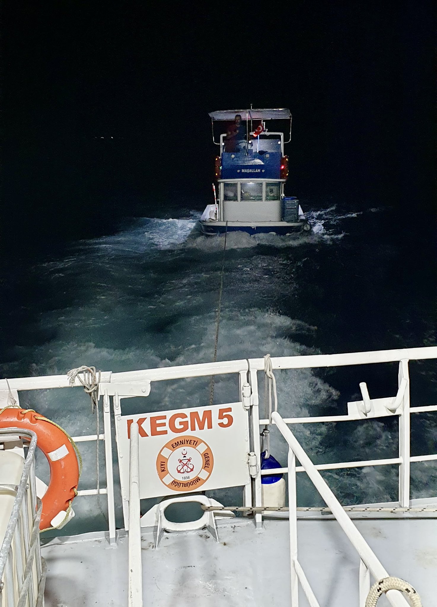 Konuya dair yapılan paylaşımda şu ifadelere yer verildi: “Türkeli (Rumeli) Feneri açıklarında makine arızası nedeniyle sürüklenen ve içinde 3 kişi bulunan 7 metre boyundaki balıkçı teknesi, KEGM-5 hızlı tahlisiye (can kurtarma) botumuzca yedeklenerek Türkeli Balıkçı Barınağı’na emniyetle yanaştırıldı.”