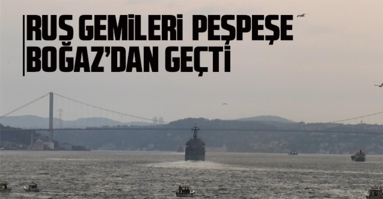 İstanbul Boğazı'ndan geçen Rus Donanması'na ait 031 borda numaralı 'Alexander Otrakovsky' ile 027 borda numaralı 'Kondopoga' adlı savaş gemileri Karadeniz'e doğru yol aldı.
