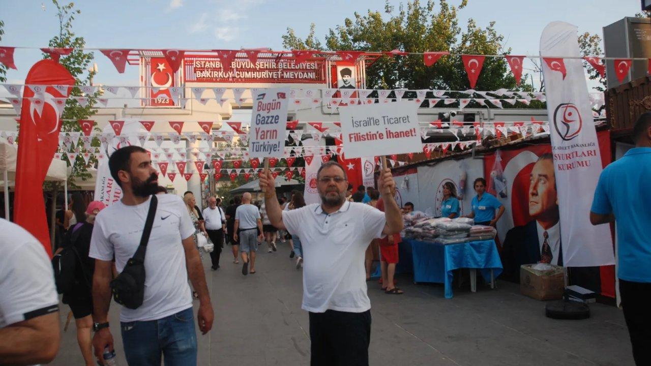 Saadet Partisi Bakırköy İlçe Başkan Yardımcıları ile birlikte Özgürlük Meydanı’ndan Marmaray İstasyonuna kadar, “Bu gün Gazze, yarın Türkiye”, “İsraille Ticaret, Filistine İhanet”, “Tek çare İslam Birliği”, “BOP’a karşı çık, Vatanını koru” yazılı dövizlerle yürüyen İlçe Başkanı Mehmet Faruk Ertekin’in okuduğu ortak basın açıklamasında “Hamas’a selam gönderip, İsrail’e lojistik göndermek ikiyüzlülüktür. Gazze’ye dua gönderip, Tel Aviv’e petrol akıtmak ikiyüzlülüktür. Önce inkâr edip, yedi ay sonra kestik deyip, on aydır kesintisiz ticarete devam etmek ikiyüzlülüktür. Olup bitenin sorumluluğunu hiç üzerlerine alınmayıp, kim oldukları, nerede oldukları belli olmayan gizli öznelere seslenmek ikiyüzlülüktür” denildi.