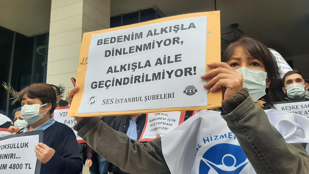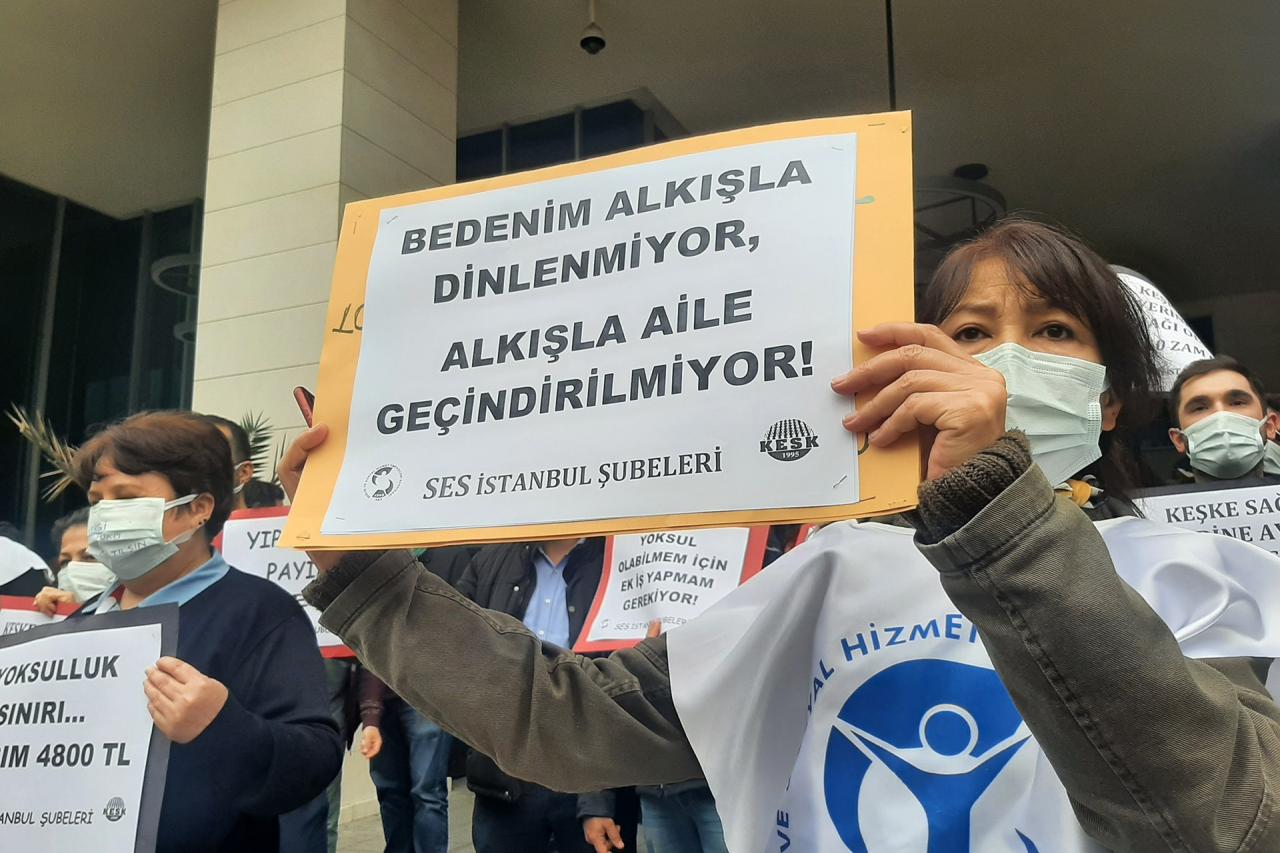 Yaşadıkları zorlukları anlatan bir hemşire ise artık alkış değil hak ettikleri ücreti istediklerini anlattı. Hemşire, “Yoğun ve angarya iş yükünden mi bahsedeyim, yönetim tarafından uğradığımız zorbalıktan mı bahsedeyim, ekonomik krizin ve enflasyonun altında nasıl ezildiğimizden mi, performans sisteminden kaynaklı sağlık emekçileri arasındaki iş barışının bozulmasından mı bahsedeyim? Gerçekten artık yeter! Çok yorulduk! Deprem olur, salgın hastalık olur bizler alandayız. Gecemizi gündüzümüze katıp çalışıyoruz. Ama sadece alkış alıyoruz. Biz artık alkış istemiyoruz” ifadelerini kullandı.