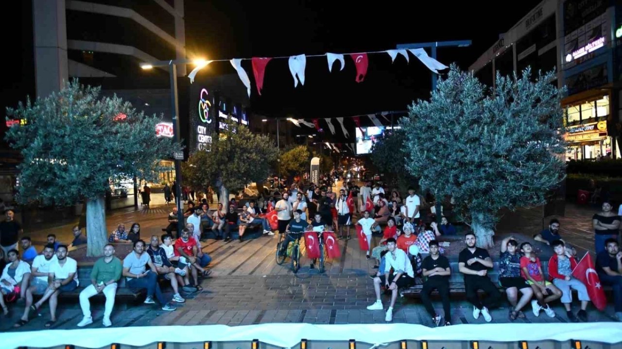 Türkiye ile Sırbistan arasında oynanan şampiyonluk maçını dev ekrandan izleyen vatandaşlar, milli takım için tek yürek oldu. Türkiye forması giyerek alanda toplananlar, her sayıda alkış ve tezahüratlarla Filenin Sultanları’na destekte bulundu.