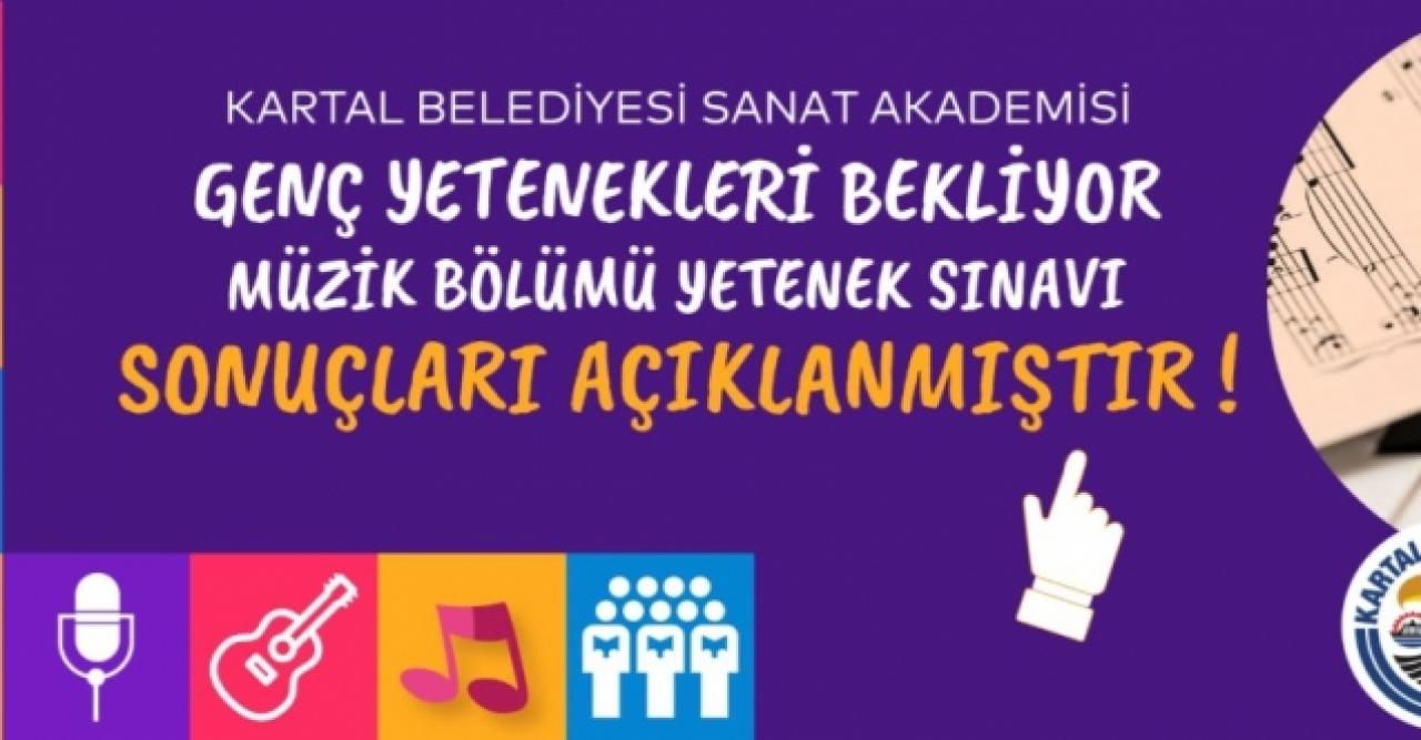 Geçtiğimiz günlerde Kartal Belediyesi Sahil Ek Hizmet Binası’nda yetenek sınavının gerçekleştirildiği ve İstanbul’un birçok ilçesinden 7-15 yaş aralığındaki yüzlerce yeteneğin; piyano, keman, gitar, çello, yan flüt, perküsyon, keman, viyola ve koro branşlarında eğitim almak amacıyla başvurduğu Sanat Akademisi Müzik Bölümü’nde eğitim almaya hak kazananlar listesi açıklandı.
