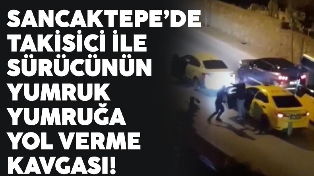 SANCAKTEPE'de taksi şoförü ile otomobil sürücüsü arasında yol verme nedeniyle çıkan yumruklu kavga cep telefonu kamerasına yansıdı.
