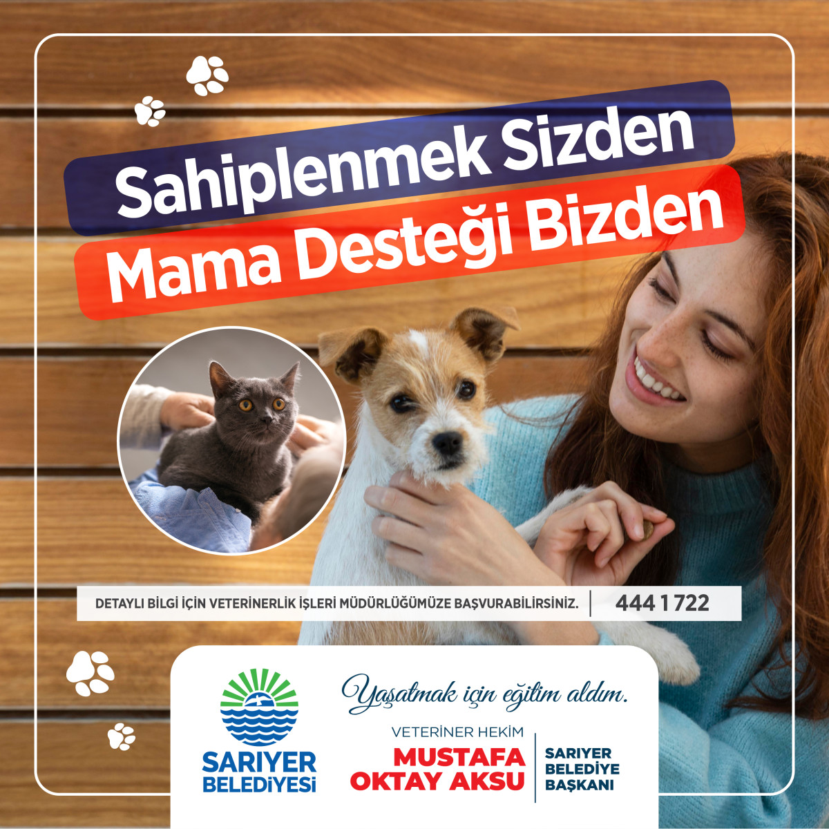 Sarıyer Belediye Başkanı Mustafa Oktay Aksu, mecliste kabul edilen Hayvanları Koruma Kanunu’nun ardından Sarıyer sınırları içinde sokak hayvanlarını sahiplenen vatandaşlara mama desteği verileceğinin duyurusunu yaptı. İlçede sokak hayvanlarına sahip çıkıp uyum içinde yaşamayı hedefleyen bir bakış açısına sahip olan belediye, öldürmek yerine yaşatmayı hedefliyor. Sarıyer Belediyesi, Safiye Kaya Sokak Hayvanları Geçici Bakımevinde rehabilite işlemleri tamamlanan hayvanların sahiplenilmesi sonucunda bir yıl boyunca mama desteği sağlayacak. Bunun için vatandaşların yapması gereken tek şey 444 1 722 numaralı telefondan Sarıyer Belediyesi Veteriner İşleri Müdürlüğü’ne ulaşmaları.