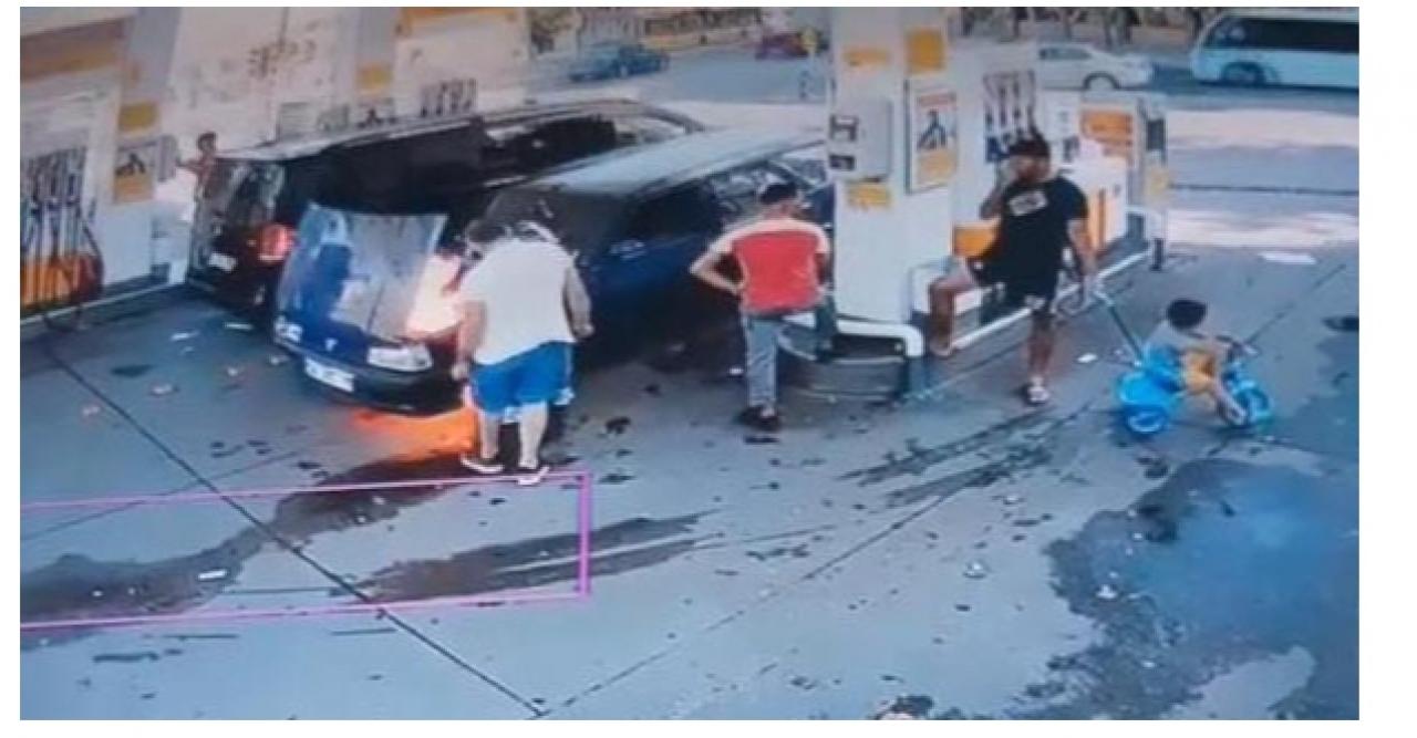 Yangın, Sarıyer Çayırbaşı Mahallesi'nde bulunan akaryakıt istasyonunda cumartesi günü saat 16.30 sıralarında meydana geldi. Arızalı olduğu belirtilen otomobile, 2 kişi tarafından müdahalede bulunuldu. Ön kaputu açılarak kontrol edilen otomobil, çalıştırmak için uğraştıkları sırada bir anda alev aldı. Otomobili tamir etmeye çalışanlar, koşarak uzaklaşmaya çalıştı. Bu sırada koşanlardan biri, arkalarında bisiklet üzerinde bulunan çocuğa çarparak düşmesine neden oldu. Hemen geri dönen adam çocuğu kucaklayarak istasyondan çıktı. Soğukkanlı olan istasyon görevlileri ise yangın tüpü ile alevlere kısa sürede müdahale etti. Yangın, istasyona sıçramadan söndürüldü. Yaşananlar ise saniye saniye güvenlik kamerasına yansıdı.