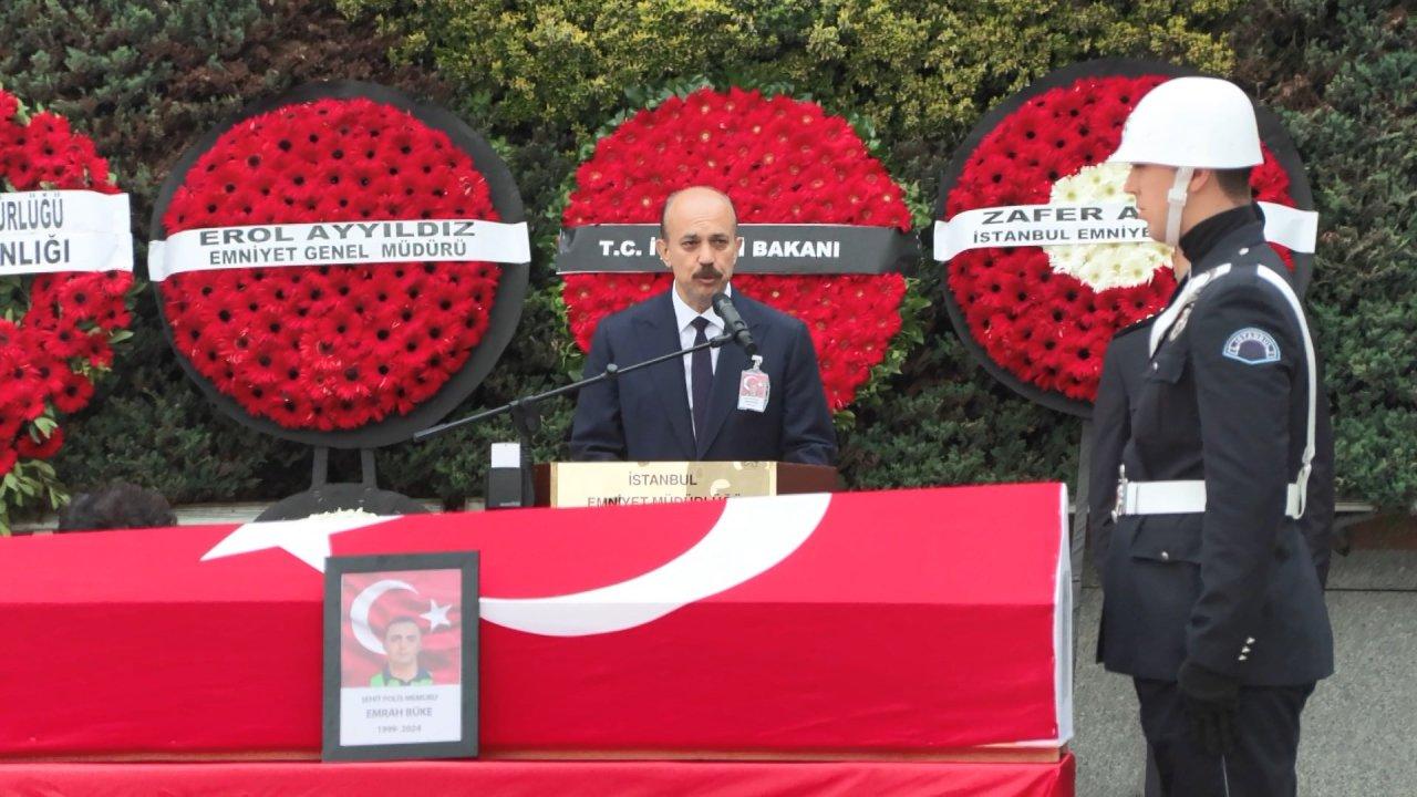 Törende konuşan İstanbul İl Emniyet Müdürü Zafer Aktaş, "25 Nisan 2024 Perşembe günü saat 17.30 sıralarında, Trafik Denetleme Şube Müdürlüğümüz kadrosunda görevli Polis Memuru Emrah Büke görev esnasında, Ümraniye ilçemiz Atatürk Mahallesi Şile Yolu Elmalıkent köprü altı bağlantı yolunda resmi motosikletle seyir halindeyken virajı alamayarak tek taraflı trafik kazası yapması sonucu ağır yaralı olarak kaldırılmış olduğu Ümraniye Eğitim ve Araştırma Hastanesinde yapılan tüm müdahalelere rağmen kurtarılamayarak şehit olmuştur. 2023 yılında Balıkesir Polis Meslek Eğitim Merkezinden başarı ile mezun olan ve geçtiğimiz yılsonunda teşkilatımıza katılan Şehidimizin aramızdan zamansız ayrılması, başta çok değerli ailesini ve biz sevenlerini derinden üzmüştür. Milletimizin ve devletimizin bekası uğruna canlarını hiçe sayarak ölüme koşan ve görevini layıkıyla yapmış olmanın huzuru içerisinde canlarını feda eden kahraman şehitlerimiz; Sizler bu aziz vatanın teminatısınız. Manevi varlığınızdan güç alan, polis teşkilatımız sizlerin fedakârlığı sayesinde ilelebet payidar kalacaktır. Kıymetli Meslektaşlarım, Şehidimizin Saygıdeğer Yakınları; Bugün; yüreklerinize sığdıramadığınız acılarınızı azaltmanın mümkün olmadığını çok iyi biliyorum. Üzüntümüz derin, acımız büyüktür! Allah hepimize sabırlar versin. Devletine ve Milletine bağlı, görev aşkı ile dolu iken, mertebelerin en yükseği olan şehitlik mertebesine erişen Aziz şehidimizi, hiçbir zaman unutmayacağız" ifadelerini kullandı. Şehidin cenazesi duaların ardından, tören mangası tarafından cenaze aracına bindirilerek memleketi Konya'ya gönderilmek üzere yola çıktı. Şehidin ayakta durmakta zorlanan ailesine İl Emniyet Müdürü Zafer Aktaş destek oldu.