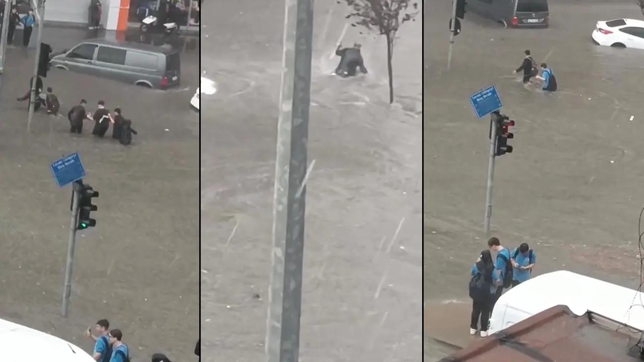 Yarı boylarına kadar gelen suda güçlükle ilerleyerek canlarını tehlikeye atan bazı öğrenciler bir vatandaşın cep telefonu ile saniye saniye yansıdı. Araçların suda yüzdüğü bulvarda bir vatandaşın da beline kadar gelen suya girip yolun karşısına geçme çabası da kameraya yansıdı. Cep telefonunun ıslanmaması için büyük çaba harcayan kişi ayağı takılıp suya düşmekten kurtulamadı.