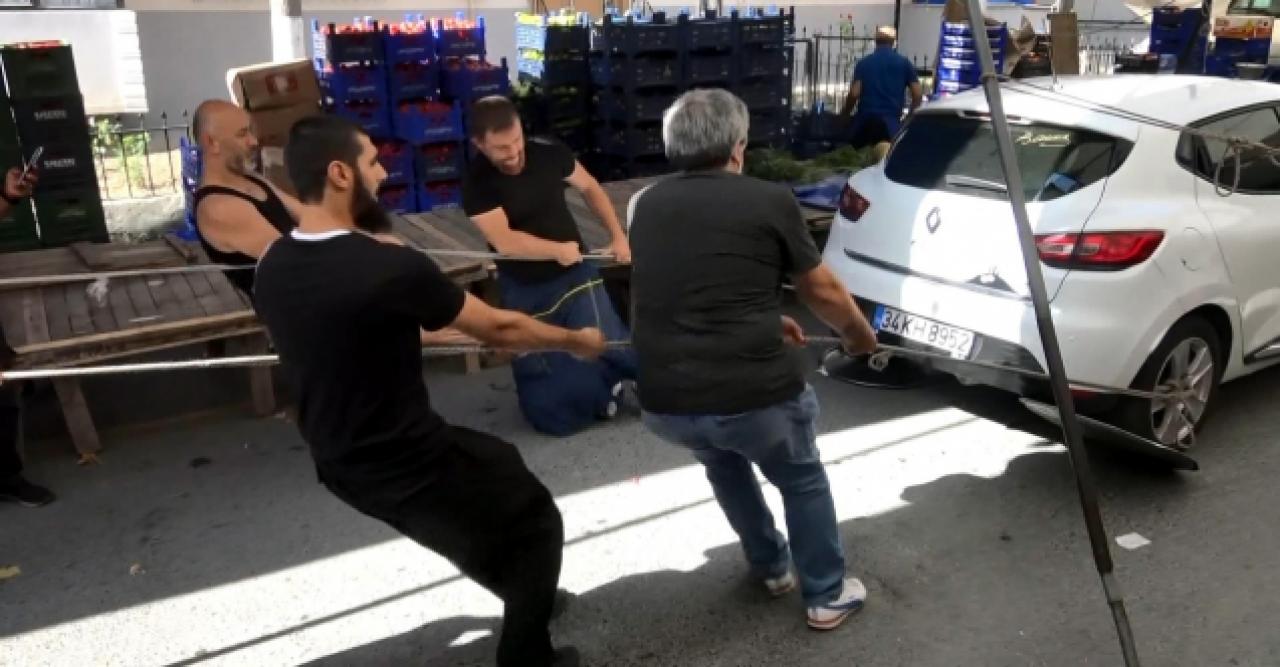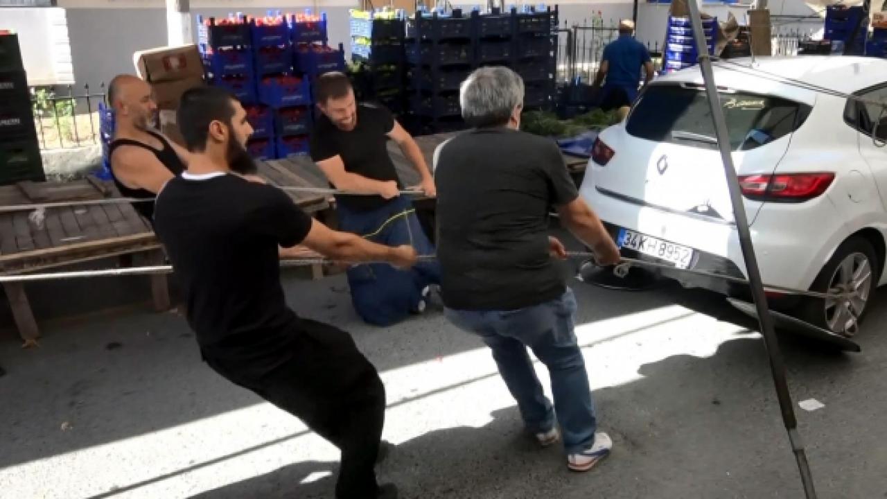 Pazarcılar geçici çözüm olarak, aracın ucundan kaldırıp, lastiklerinin altına metal tepsiler yerleştirdi. Böylece otomobili ortaya iterek, tezgahlarını yerleştirmeye başladı. Günün ilerleyen saatlerinde pazara gelenlerin sayısının artacağı göz önüne alınarak, çareler arandı. Bir pazarcı forklift getirip aracı biraz havaya kaldırarak, ön lastiklerinin altına büyük plastik kapakları yerleştirdi. Daha sonra arka lastiklerin jantlarına halatlar bağlandı. Pazarcılar, arka lastiklerinin altına metal tepsi, ön lastiklerinin altına da lastik kapaklar yerleştirdikleri aracı hemen yakındaki bir binanın otoparkına kadar çekip, iterek kaldırdı. Pazarcıların tezgahların ortasındaki otomobili halatlarla çektiğini görenler şaşırdı. Pazarcıların güç birliğini her yerde göstermesini isteyen bir esnaf, "Seyit Onbaşı'nın torunlarıyız. Birlik olsak neler yapmayız ki" dedi.