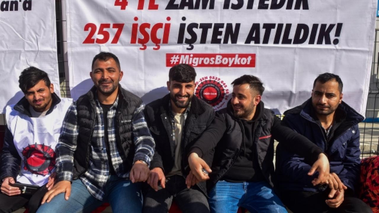 Migros’un İstanbul Esenyurt deposunda düşük zam ve işten atmalara karşı direnişe geçen işçilerin eylemi devam ediyor. Liman, Tersane ve Deniz İşçileri Sendikası’nda (DGD-Sen) örgütlenen işçiler, işverenin yüzde 8’lik zam önerisine karşı 16 gündür eylemde. Düşük zamma karşı iş bırakma eylemi başlattıkları için işten çıkarılan 257 işçi, depo önünde ve Türk Sanayicileri ve İş İnsanları Derneği (TÜSİAD) ile Anadolu Grup Genel Müdürlüğü önünde eylem yaptı. İşçiler talepleri kabul edilene kadar eylemlerini sürdürmekte kararlı.
