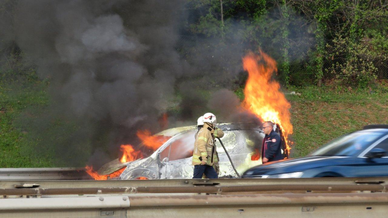 Ümraniye TEM Otoyolu'nda seyir halindeki hafif ticari araçtan dumanların yükseldiğini gören sürücü, aracı emniyet şeridine park etti. Bir anda alev alev yanmaya başlayan aracı, itfaiye ekipleri söndürdü. Araç yangını nedeniyle Ankara istikametinde trafik yoğunluğu oluştu.