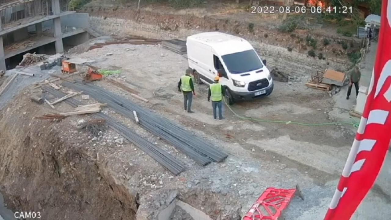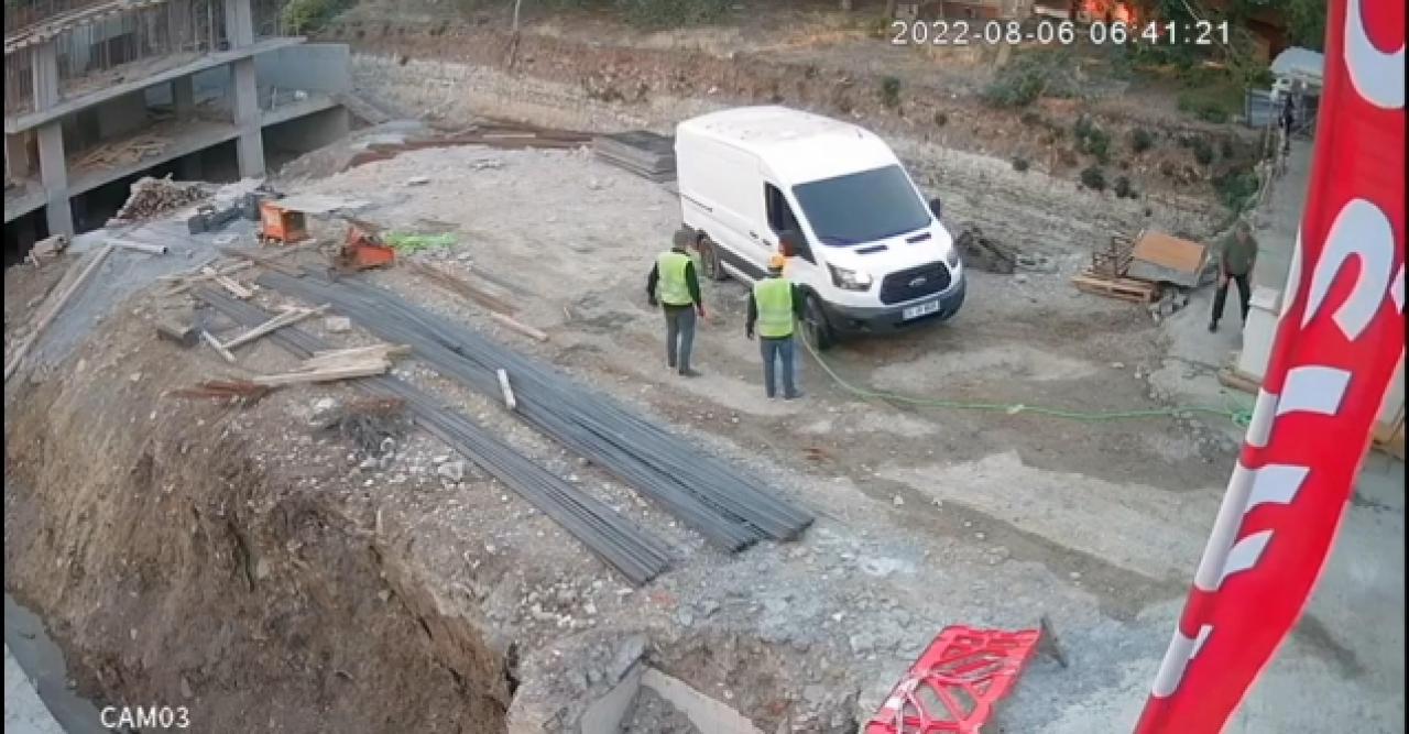 İnşaat alanındaki hırsızlık anları güvenlik kamera görüntülerine saniye saniye yansıdı. Görüntülerde inşaat alanına panelvan minibüs ile gelen şüpheliler aracın arka kapılarını açıyor. Bu sırada şüphelilerden biri aracın arkasında dururken diğerinin de inşaat alanındaki işçi ile konuştuğu ve yerdeki hortumla aracı yıkadığı görülüyor. Görüntülerin devamında ise şüphelilerden biri, işçi ile konuştuktan sonra diğer çalışanların geldiğini fark ederek minibüsle inşaattan uzaklaşıyor. İşçilerden birinin ise hırsızları sopa ile kovaladığı görülüyor.