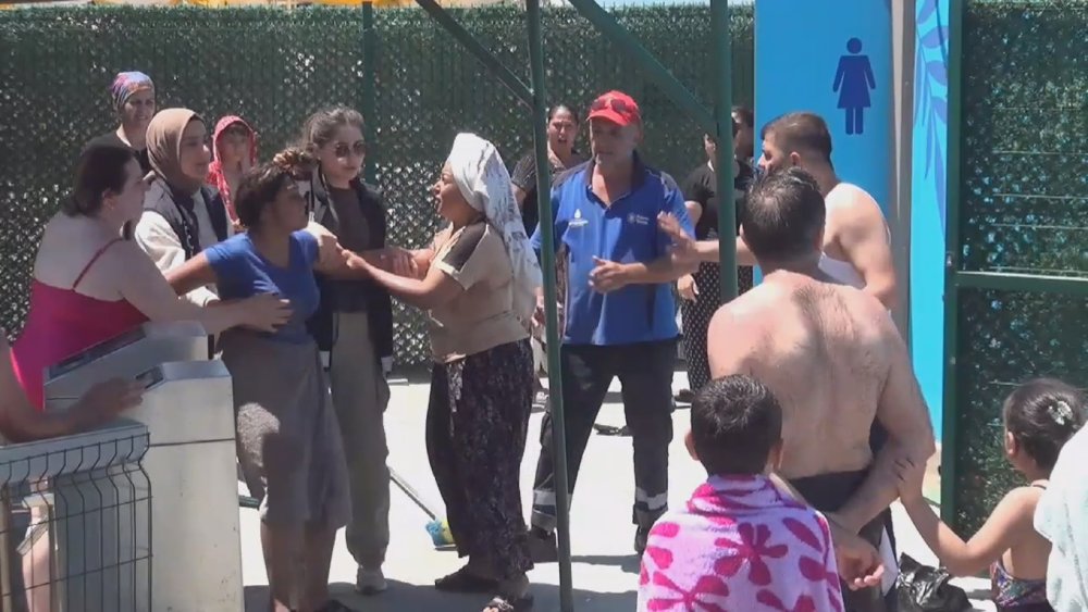 Öte yandan plajda bulunan duşakabin alanında 2 kadın grup arasında tartışma çıktı. Bir süre devam eden arbede polisin gelmesiyle son buldu.