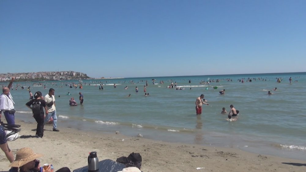 Kurban Bayramı'nın son gününde Silivri'de sıcaktan bunalanlar Kumluk Plajı'na akın etti.