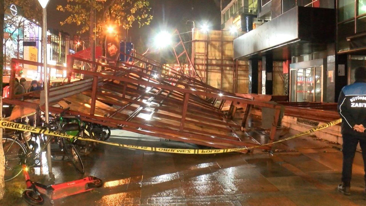 İddiaya göre, cadde üzerinde yıkılacak olan 5 katlı bir binanın etrafındaki inşaat panelleri şiddetli rüzgar nedeniyle kaldırıma devrildi.