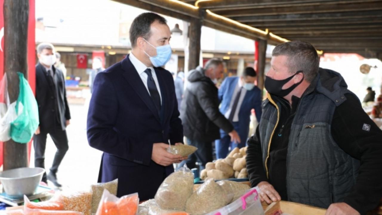 Silivri Belediye Başkanı Volkan Yılmaz, çiftçilerin ürettiği doğal ürünleri aracı olmadan tüketici ile buluşturmak amacıyla hayata geçirilen Silivri Köy Pazarı’nı ziyaret etti. Esnafa hayırlı işler dileyen Başkan Yılmaz, vatandaşlara çağrıda bulunarak ucuz, taze ve organik ürünlerin satıldığı köy pazarından alışveriş yapmaya davet etti. Üreticiyi desteklemek amacıyla köy pazarını kurduklarını belirten Başkan Yılmaz, “Biz yola çıkarken ‘Marka Kent Silivri’ demiştik. Ve bu marka kentin parametrelerinden en önemlisinin, bu kentin bir tarım kenti olacağını söylemiştik. Silivri’nin tam kalbinde bir köy pazarı kurduk. Buradaki muradımız, Silivri’deki tarımsal üreticiyi tüketici ile aradaki aracıları çıkartarak buluşturmaktı. Biz Silivri Belediyesi olarak buradaki arkadaşların hiçbirisinden kira almıyoruz. Burası tamamen Silivri’de üretilen ürünlerin hibrit tohumlarla değil, atalık tohumlarla üretilen Silivri’deki doğal ürünlerin satılığı köy pazarı. Dolayısıyla ürün fiyatları şuan market raflarındaki ürün fiyatlarından çok makul olmakla birlikte günlük, bir saat önce tarladan toplanmış ürünleri de buradaki vatandaşlarımız satın alabiliyor. Yani doğal, taze ve uygun ekonomik ürünler Silivri Köy Pazarında. Biz İstanbul’da ve Silivri’de yaşayan bütün vatandaşlarımızı köy pazarından alışveriş yapmaya, köylüyü desteklemeye, çiftçiyi desteklemeye davet ediyoruz.” ifadelerine yer verdi.
