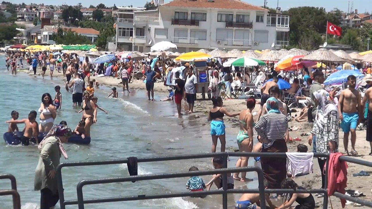 Denizin ve güneşin tadını çıkaran tatilciler Mimarsinan Mahallesindeki Kumluk Plajı'nda yoğunluk oluşmasına neden oldu.