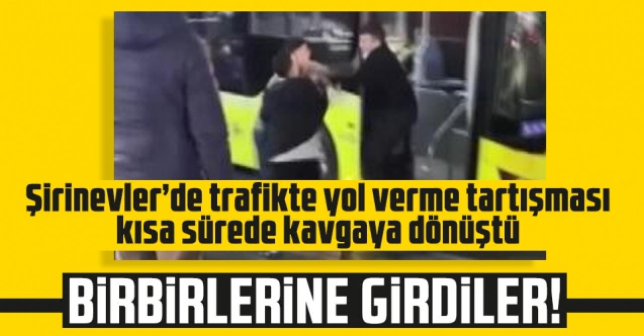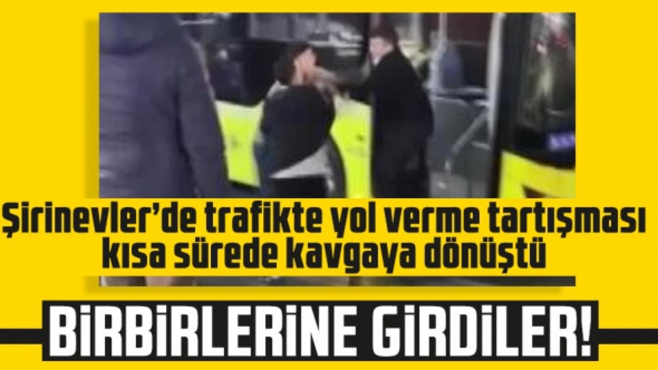 ŞİRİNEVLER'de trafikte yol verme tartışması kısa sürede kavgaya dönüştü. Otobüsün yolunu kesen otomobil sürücüsü ile İETT şoförü kavga etti.