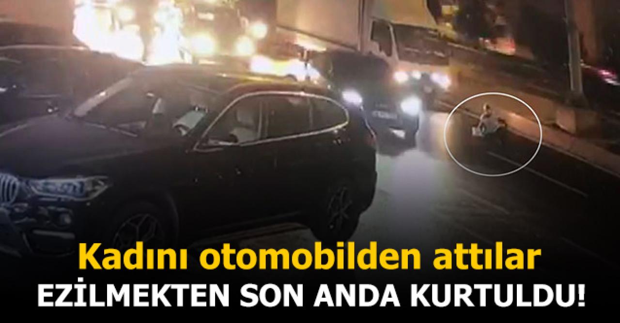 Şişli'de seyir halindeki bir otomobilden atılan kadın, akan trafikte ölümden son anda kurtuldu. O anlar kameralar tarafından kaydedildi.